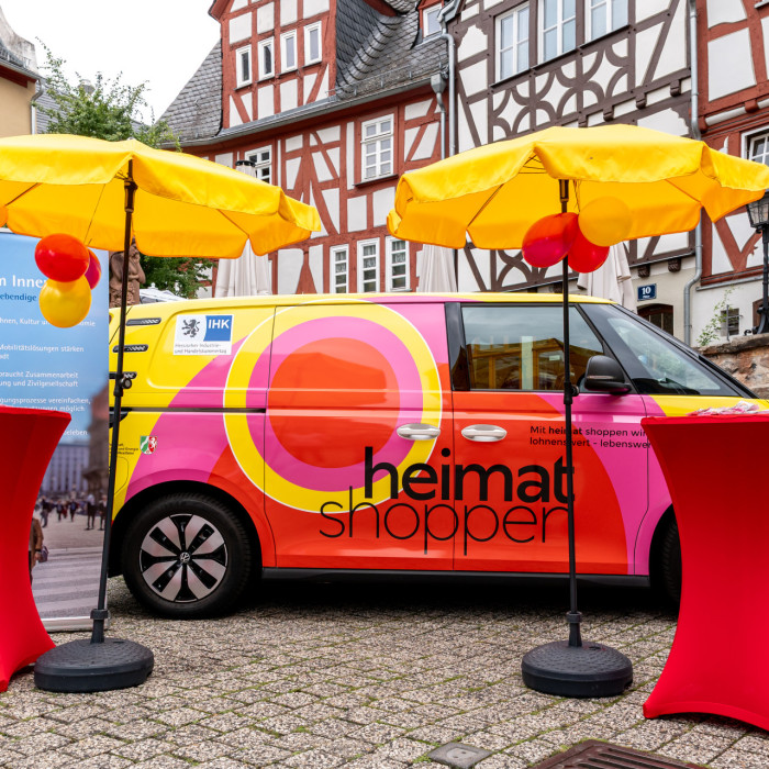 In diesem Jahr setzte die Kampagne mit einem ID.Buzz im auffälligen Heimat shoppen-Design ein starkes Zeichen für regionalen Einkauf, Nachhaltigkeit und lebendige Innenstädte. Bei der Auftaktveranstaltung in Limburg Anfang August wurde das E-Fahrzeug der Öffentlichkeit vorgestellt – ein echter Hingucker, der für drei Monaten durch alle hessischen IHK-Bezirke tourt. Eröffnet wurde der Auftakt von IHK-Hauptgeschäftsführerin Monika Sommer, die mit einem herzlichen Grußwort in die Kampagne einstimmte und das Wort an Kirsten Schoder-Steinmüller, Präsidentin des Hessischen Industrie- und Handelskammertags, übergab. Sie machte deutlich, dass mit dem elektrisch betriebenen Fahrzeug nicht nur die Botschaft der Kampagne sichtbar auf die Straße gebracht wird – sondern auch, dass Zukunft, Nachhaltigkeit und Heimatverbundenheit untrennbar zusammengehören.