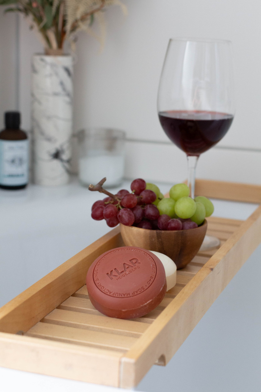 Passend zur Weinlese bietet Klar Seifen zwei Badeseifen mit echtem Riesling und Spätburgunder aus der Region Heidelberg. Genau wie ein guter Tropfen aus dem Regal bestechen diese Weinseifen mit ihrem aromatischen Duft: Während die Rieslingseife eine spritzig-frische Note verströmt, betört die Spätburgunderseife mit einem würzig-warmen, dezent fruchtigen Geruch. Das enthaltene Traubenkernextrakt verwöhnt die Haut mit extra viel Feuchtigkeit und die antioxidative und regenerative Wirkung der Inhaltsstoffe hat zudem eine straffende Funktion. Beide Badeseifen sind frei von Palmöl und tierischen Inhaltsstoffen. Sie sind plastikfrei verpackt und kosten je 9 Euro (150 g). Das Set mit beiden Weinseifen ist für 17,90 Euro erhältlich.