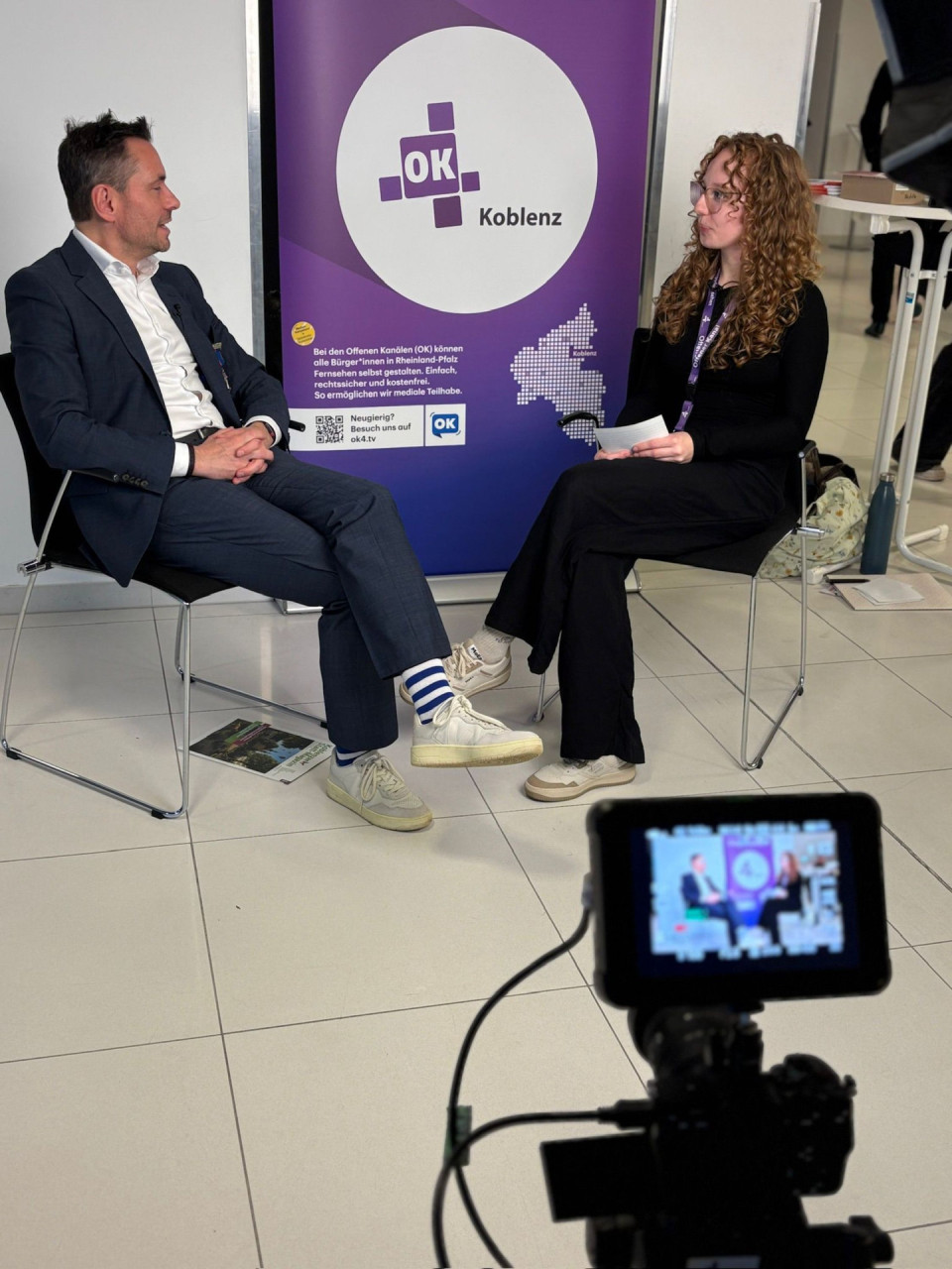 Wer mit ihr in den Räumen des OK in Ehrenbreitstein steht, merkt sofort: Hier wird nicht über Bürgerfernsehen geredet, hier wird es gemacht. „Der OK Koblenz e.V. ist ein gemeinnütziger Verein. Wir gehören zu einem Verbund aus offenen Kanälen in ganz Rheinland-Pfalz, wovon es 16 Stück gibt“, erklärt der Medienprofi. „Wir hier im Norden haben drei bzw. vier Vereine. Der OK Koblenz gehört entsprechend zum OK4-Verbund. Gemeinsam mit Adenau, Neuwied und eigentlich auch Andernach.“