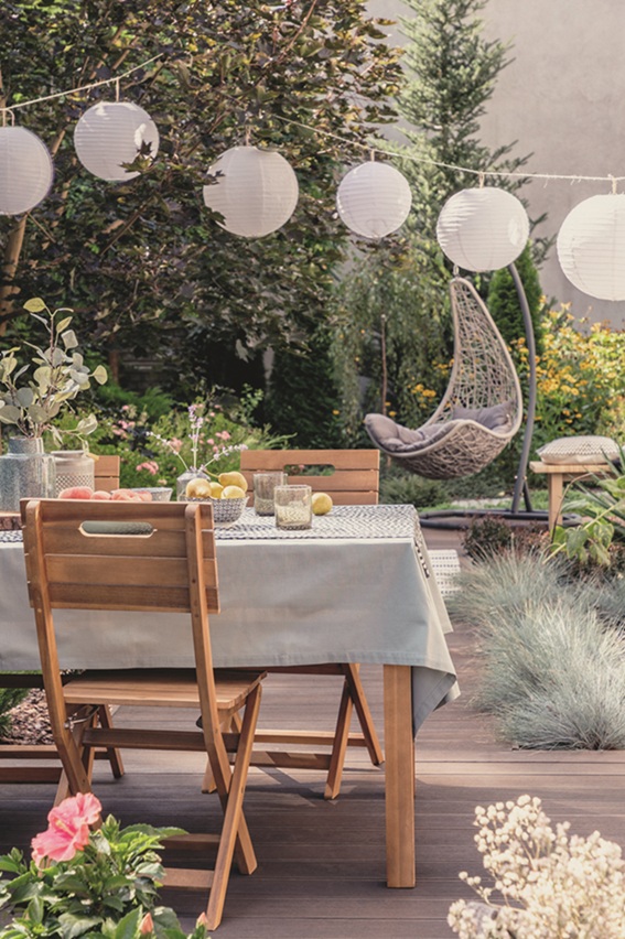 • Lichterketten und Laternen, die laue Sommerabende romantisch erleuchten